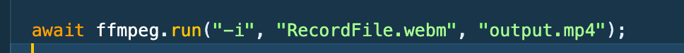 위의 -i는 input을 의미한다. 가상의 공간에 존재하는 RecrodFile.webm을 input으로 ffmpeg.run이 받는다.