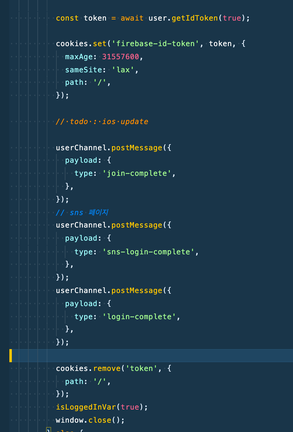 현재 사용중인 회원가입 callback page이다. 목적은 token을 받은 뒤 firebase token을 설정하고서 이전 completion page나