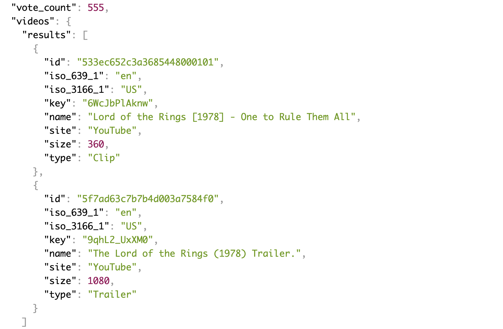 이 query의 역할은 video또는 image같은 것을 append하면 예고편이나 포스터를 가져올 수 있다.