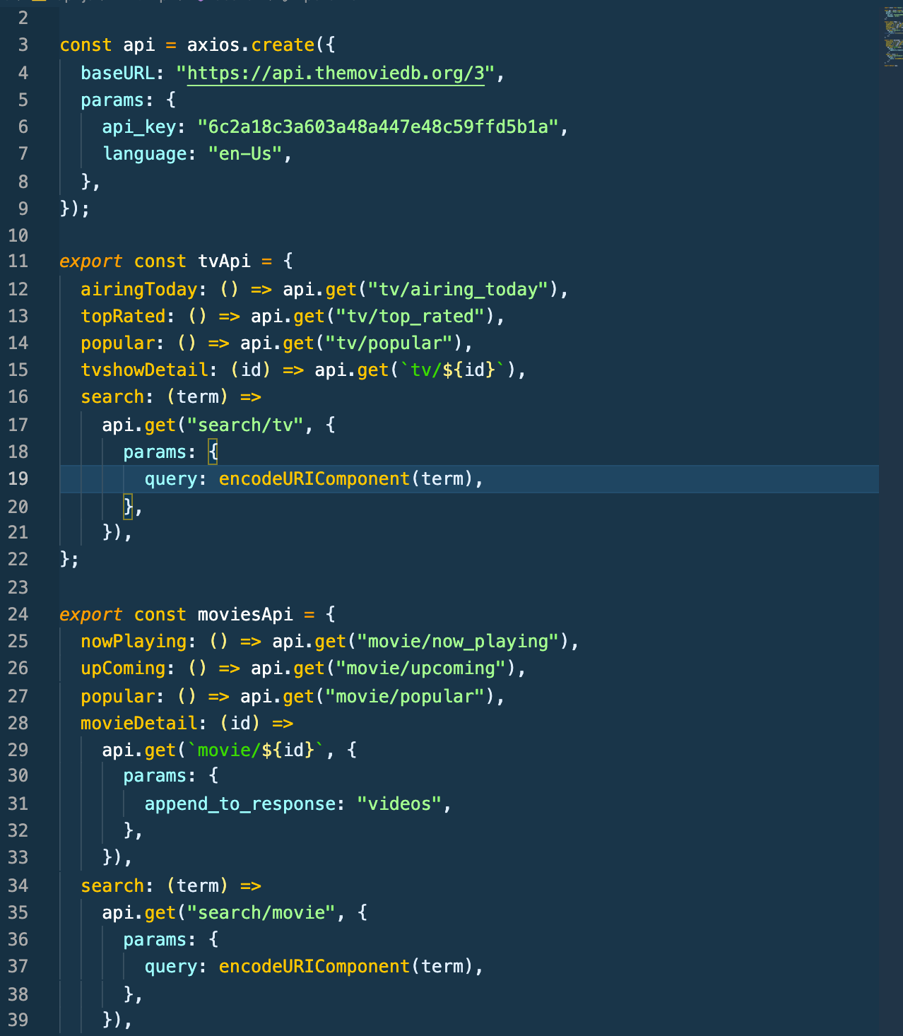 이제 tvApi와 moviesApi 객체를 만들어주자