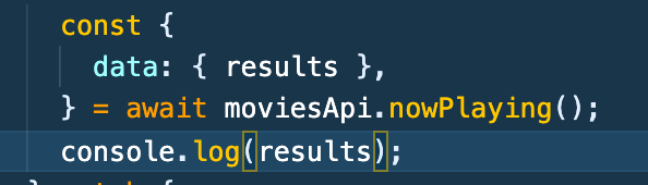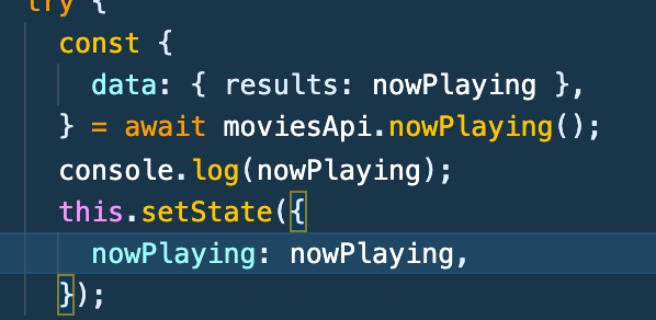 받아온 데이터를 destructuring을 이용해 nowPlaying.data를 할필요없이 data를 받아주자
