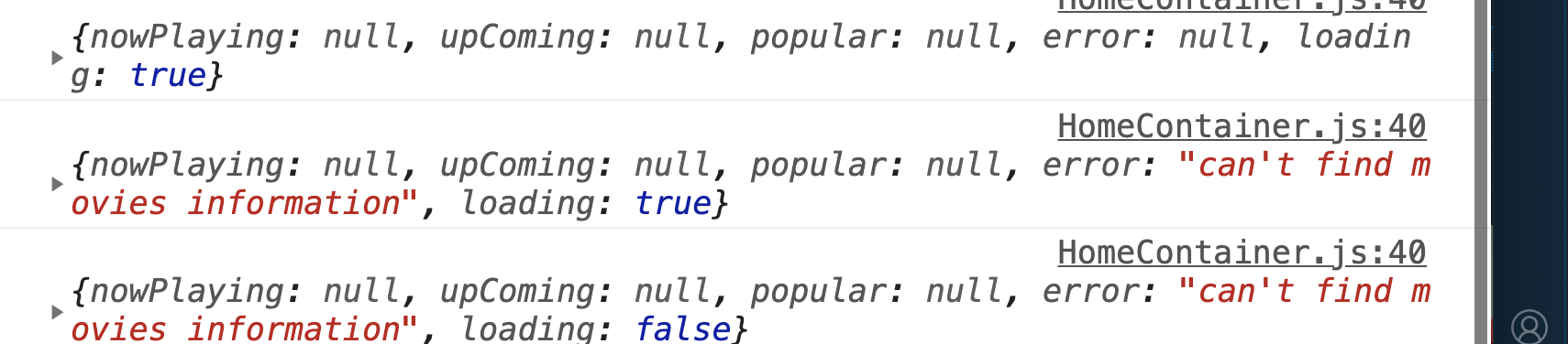 이제 홈컨테이너를 작성한다. 컴포넌트가 마운트 되면 nowPlaying, upcoming, popualr를 찾고