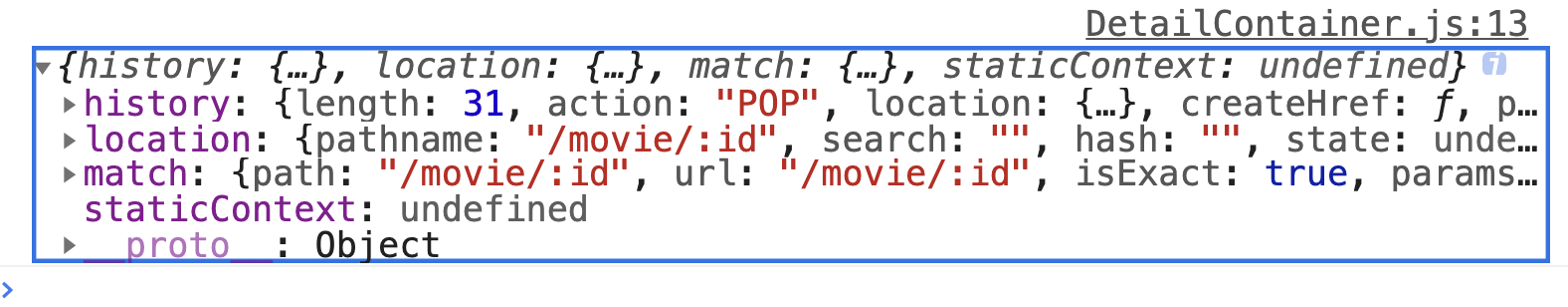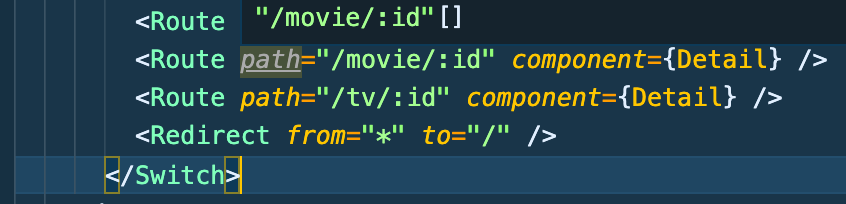 이제 해야할 작업은 두 라우트가 같은 component를 쓰기에 해당 detail page가 /movie인지 /tv인지 먼저 알아야 한다.