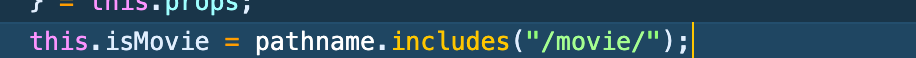 isMovie라는 variable을 만들어 주고 pathname에 /movie/가 있으면 true 아니면 false를 반환하는 코드이다.