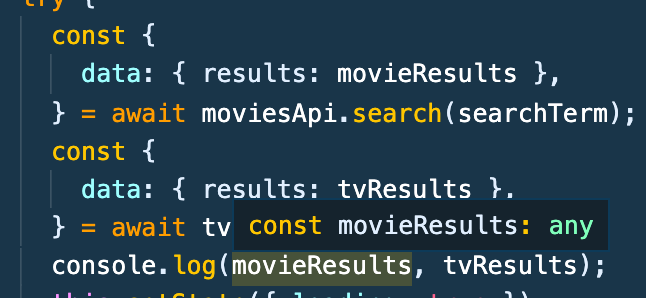 try를 한다~ 각각의 검색어를 기준으로 api에서 데이터를 받아오고 이 값으로 setState해준다.