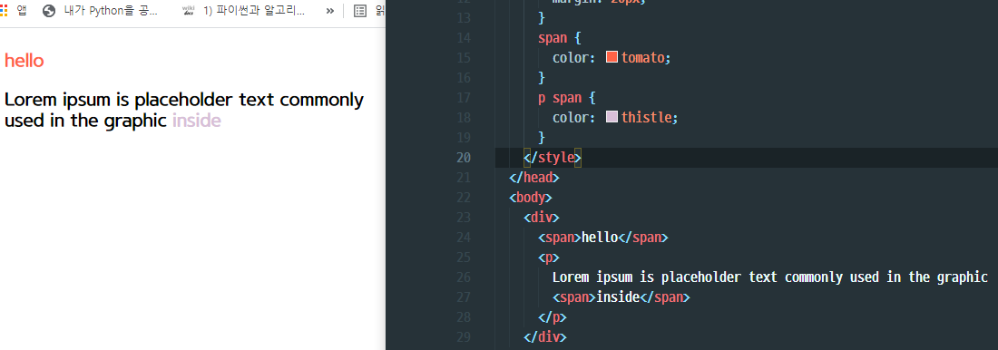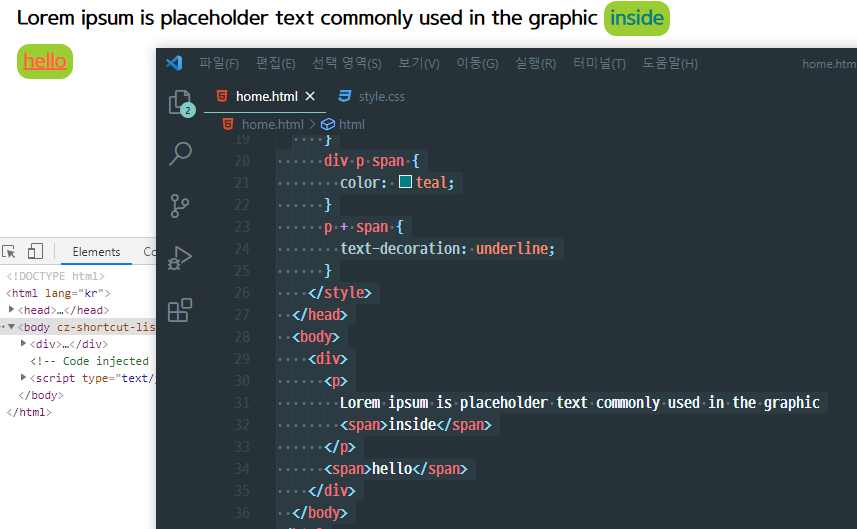 - 인접 형제 선택자(adjacent sibling selector) : +