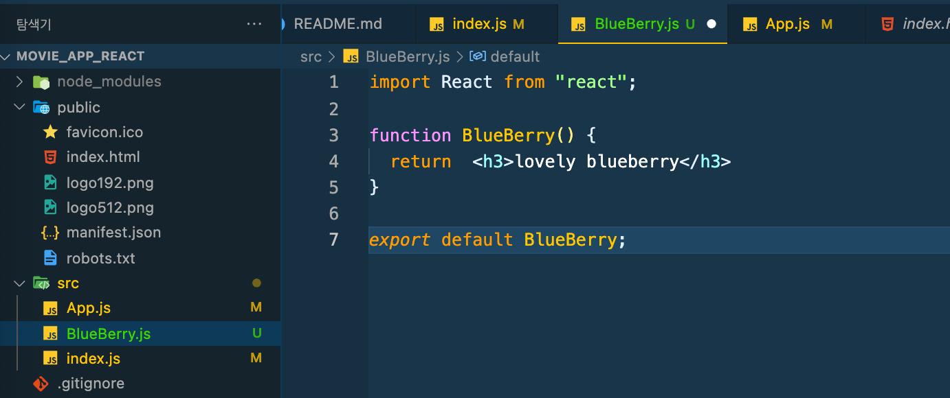 src 폴더에 BlueBerry라는 자바스크립트 파일을 하나 만들고