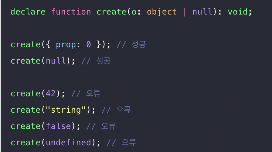 Objecdt타입을 쓰면 Object.create같은 API가 더 잘 나타난다.